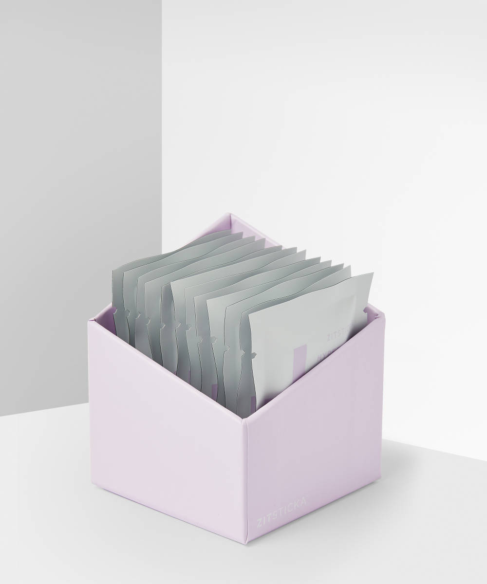 The new ZitSticka Hyperfade patches are designed to speed up this fading process. Unlike regular spot stickers, they’re specifically designed to deal with the red marks left behind by breakouts (if your breakout is still active, try the regular ZitSticka Killa Kit). Each patch contains tiny microneedles which penetrate the skin in order to dissolve ingredients exactly where they’re needed. These ingredients include niacinamide, kojic acid, vitamin C, arbutin, and TXA – all proven to work in brightening skin and breaking down the dark pigment of the acne scar.