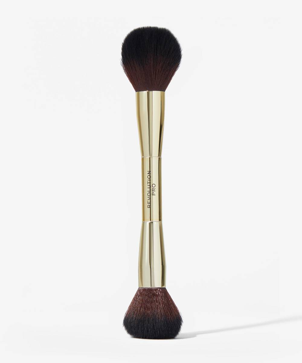 Double up with the Revolution Pro Lustre Blusher Brush. This dual-ended, easy-to-use blush brush is perfectly sized for precise application, providing you with one brush head to buff, and another to blend. Both powder and liquid blushers diffuse onto the skin with a flawless finish.