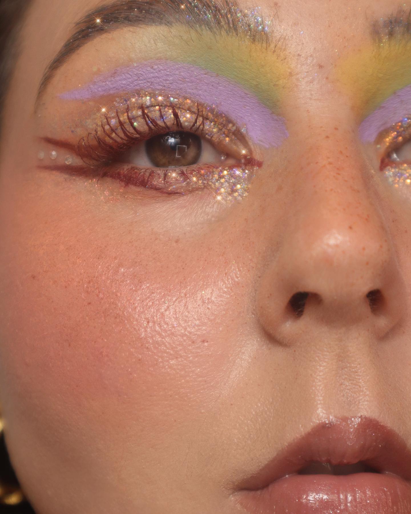 We’re living for this warm brown graphic liner with pastel shadows and chunky glitter. @kelseyh.beautyblogger, you’re giving us some real Euphoria inspo right here.