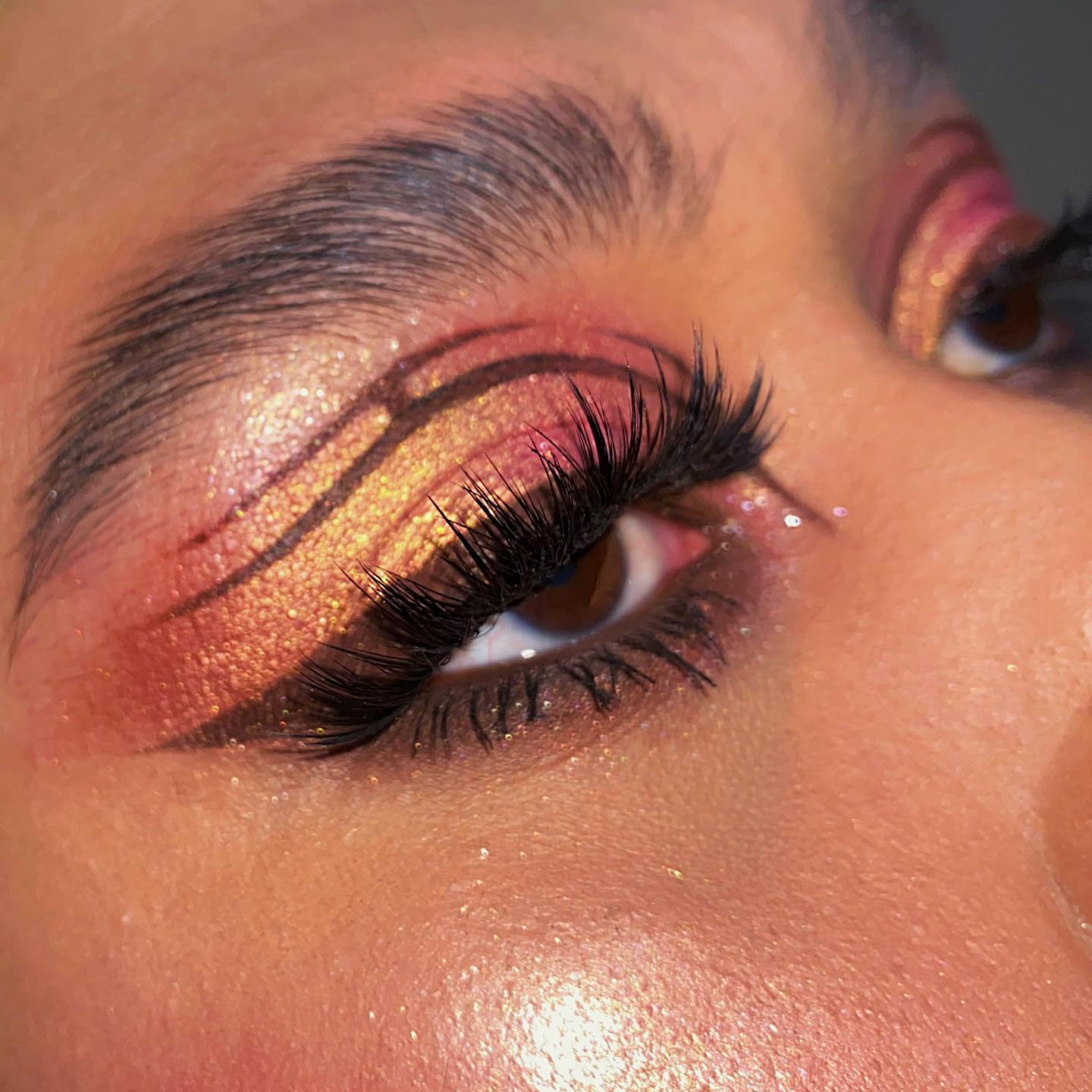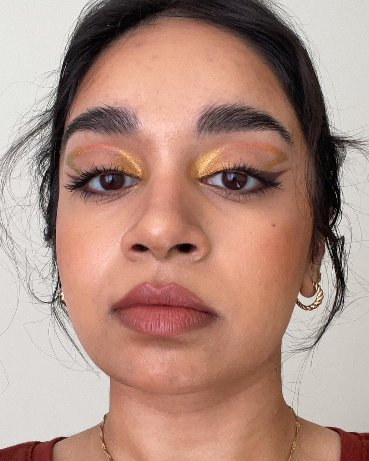 This gold glamour has got us all wanting brown eyeliner in our lives, thanks to @olivia_natalielucasmakeup. The liner adds extra depth and richness to this smoky, shimmer look and it’s to die for!