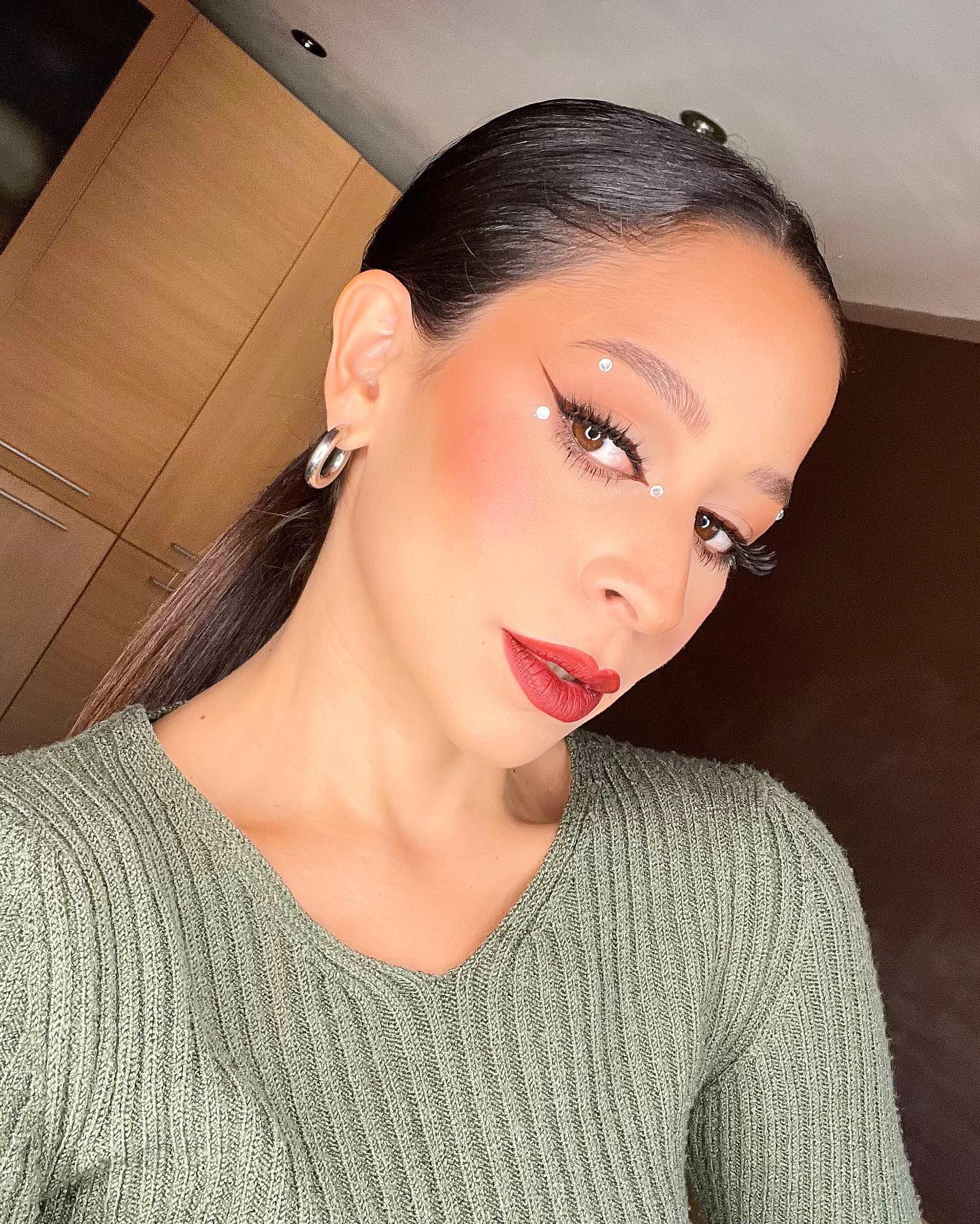 A look you’ll definitely want to recreate on your next night out. @paulinabaptistamua breaks the rules with brown liner, combining a deep, bold cat eye with minimal jewels to give go-to, easy glam!