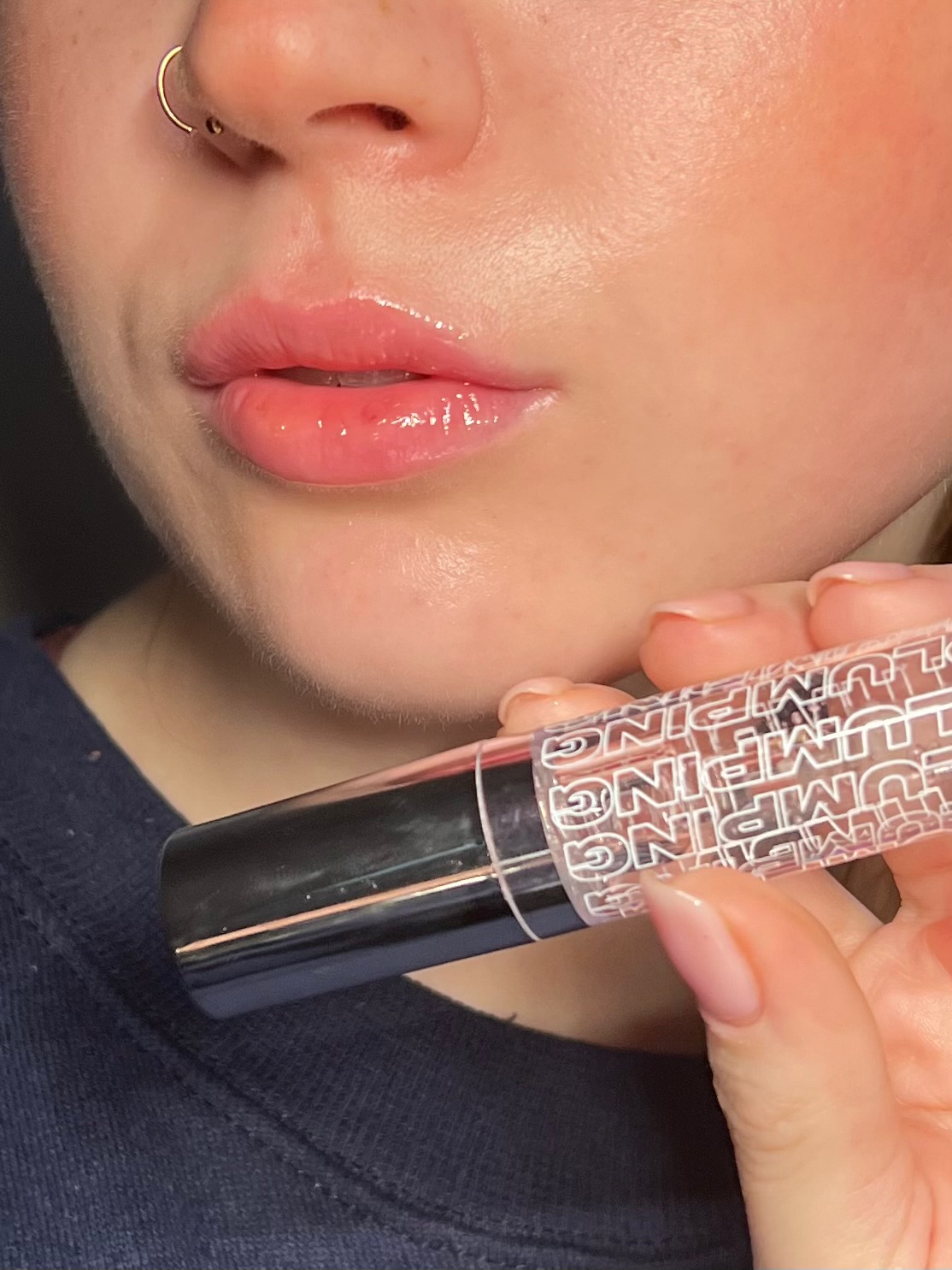 To finish the makeup look, I used the Sheer Tinted Lip Balm in Vanilla and Coconut all over the lips for a natural nude finish, then topped it off with the Super Plump Lip Gloss for that clean girl glossy shine.
