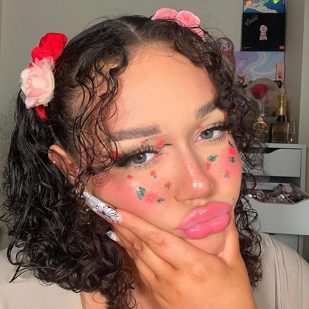 We are living for this next-level look from @echo_michaela. The super dainty flowers and hair roses finished off with a candy pink lip is something that we can’t wait to try out for ourselves.