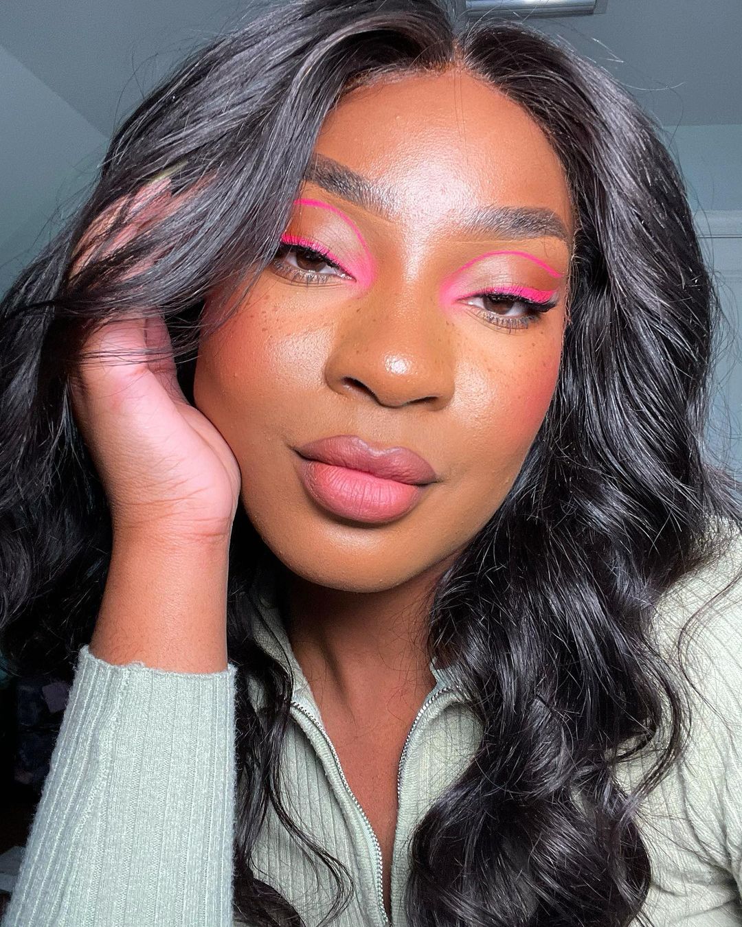 If you’ve been following us for a while, you’ll know that we cannot get enough of a graphic liner, which is why we’re beyond obsessed with this look from @glambymykaila. We can’t get enough of the bright pink liner and pop of blush on the cheeks!!!