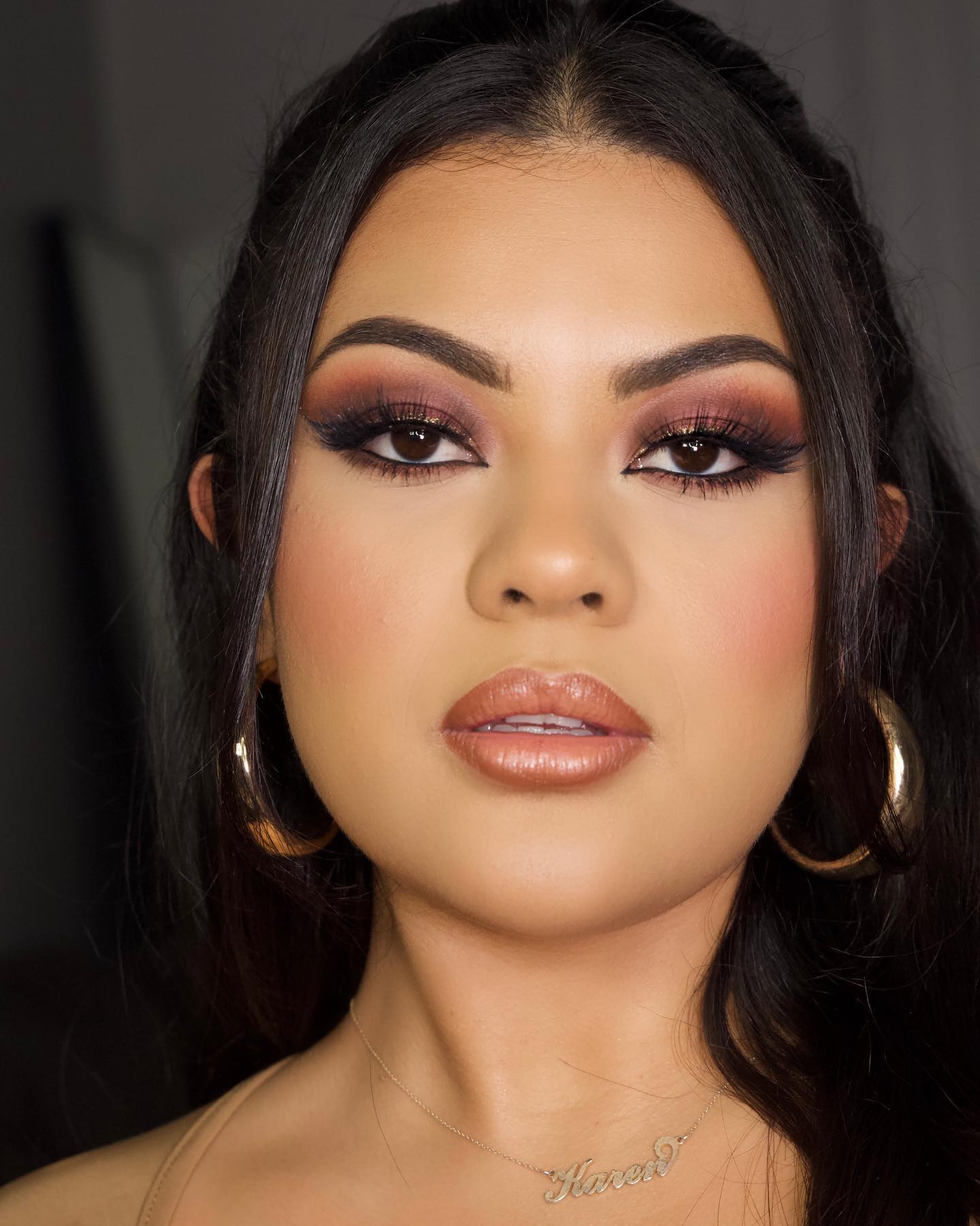 @cecilialaulanne understood the assignment with this dreamy look. This rosy, copper shadow and nude lip is to die for.