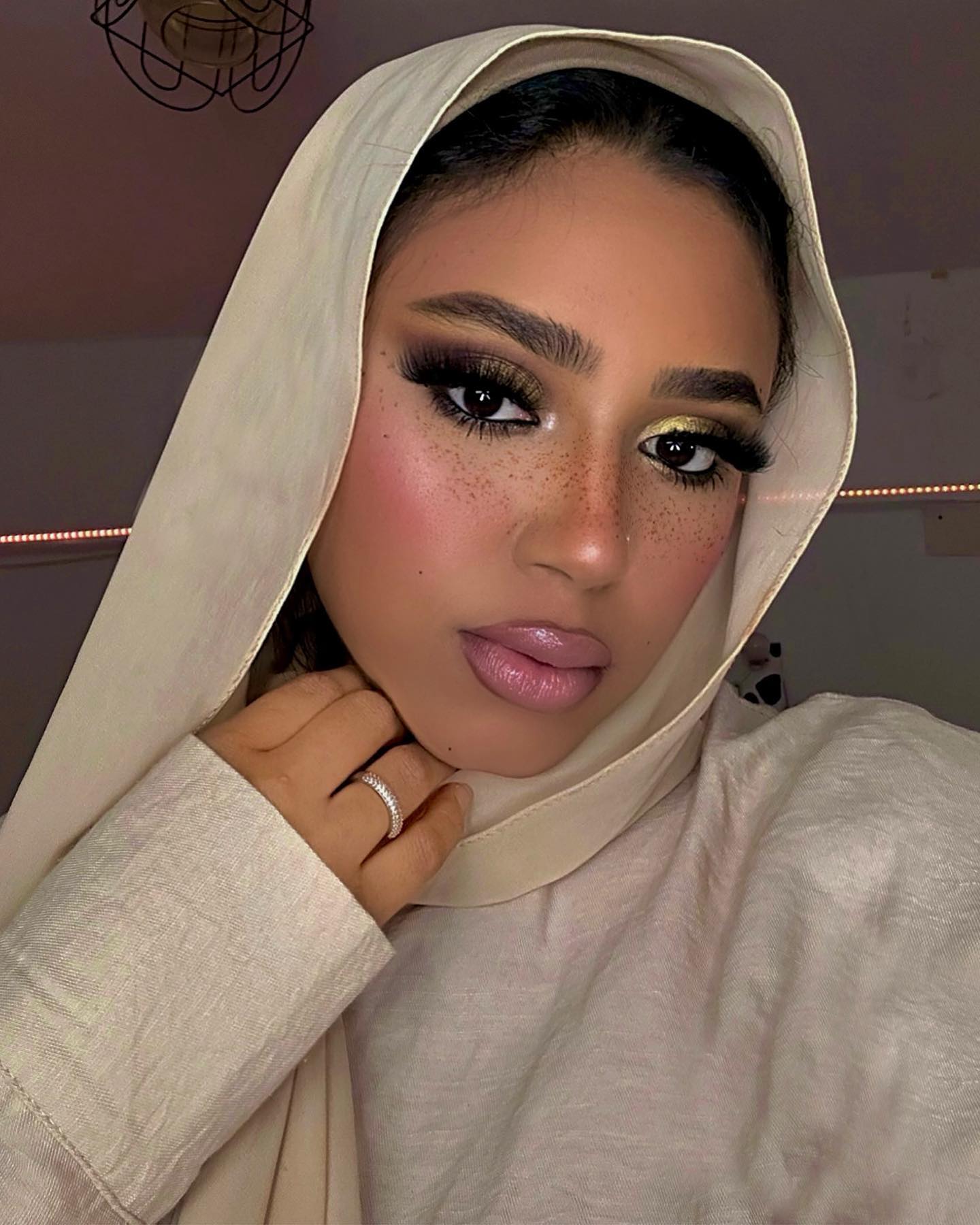 We love absolutely everything about this look from @jazzminrr. The blush, the lips, the pop of gold and the faux freckles?! Flawless.
