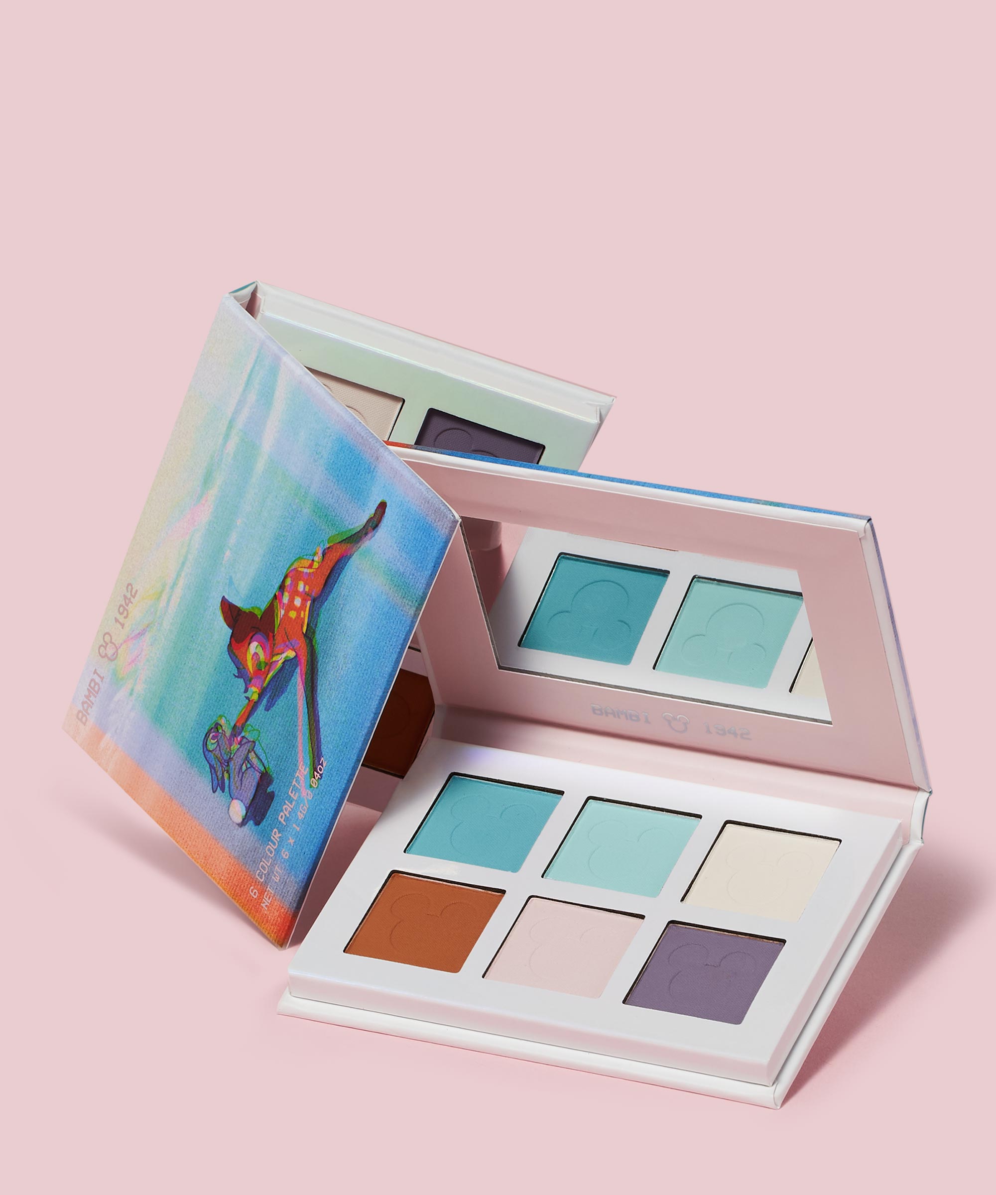 A pressed pigment palette inspired by Disney’s Bambi, featuring six chic muted shades with an ultra-blendable and buildable formula.
