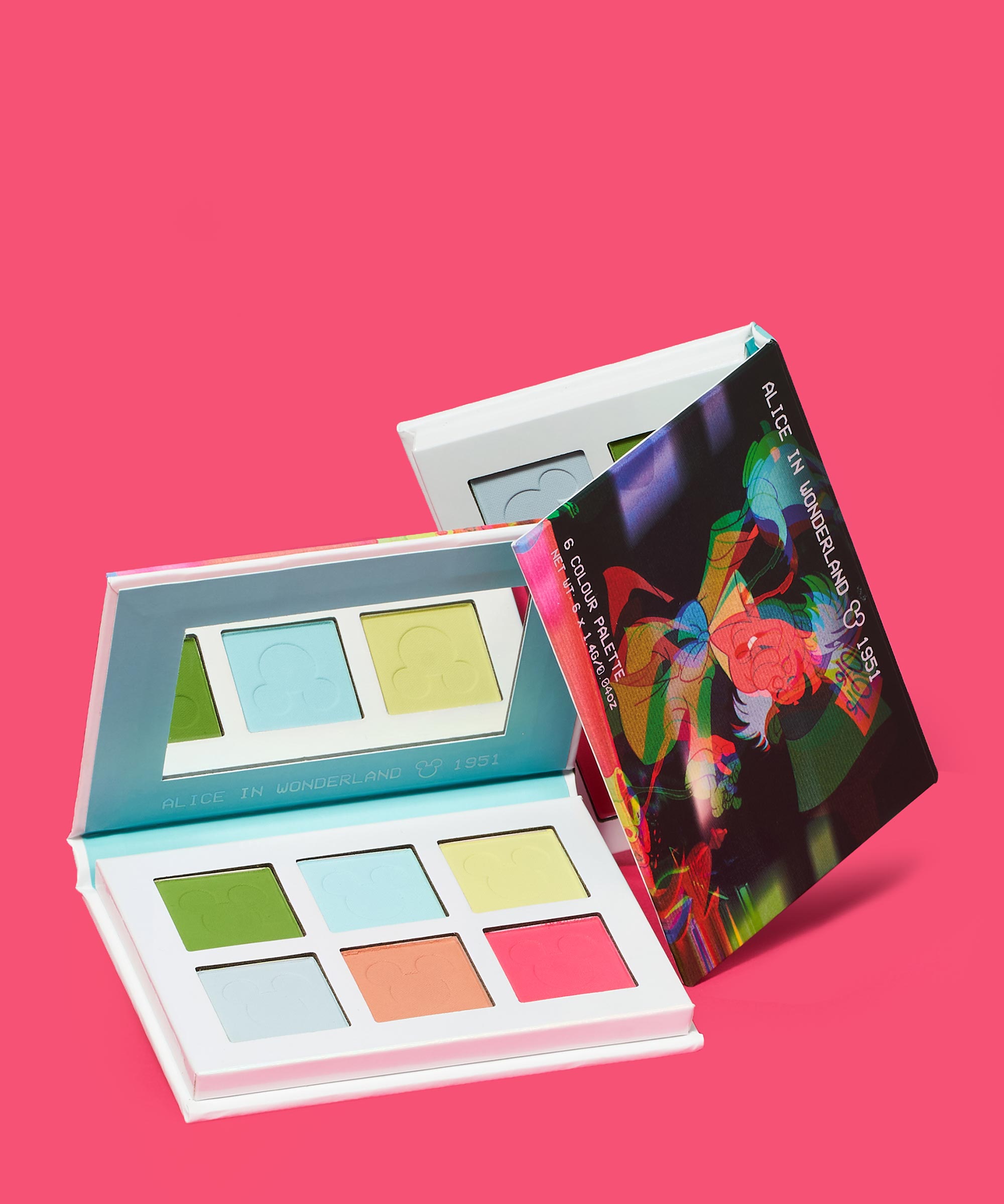 A pressed pigment palette inspired by the Mad Hatter scene in Disney’s Alice in Wonderland, featuring six uber-colourful shades with an ultra-blendable and buildable formula.