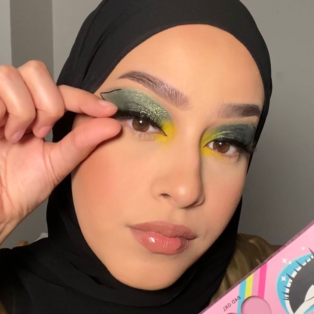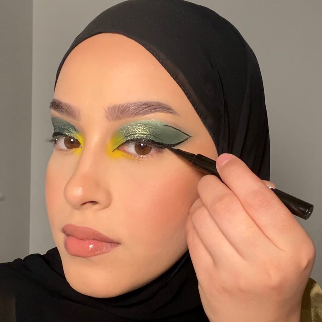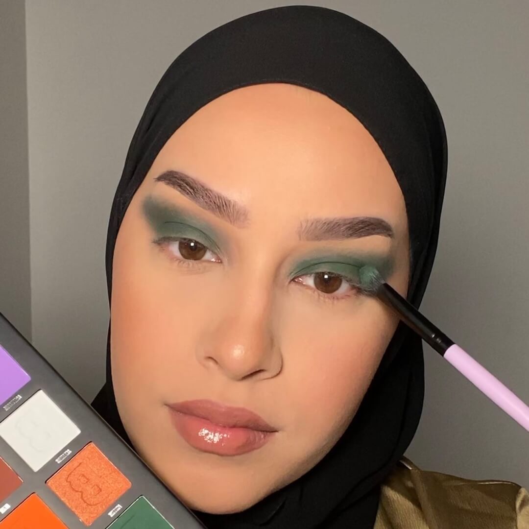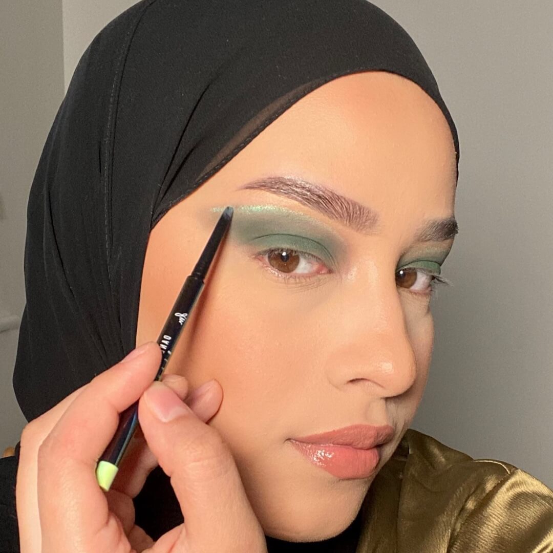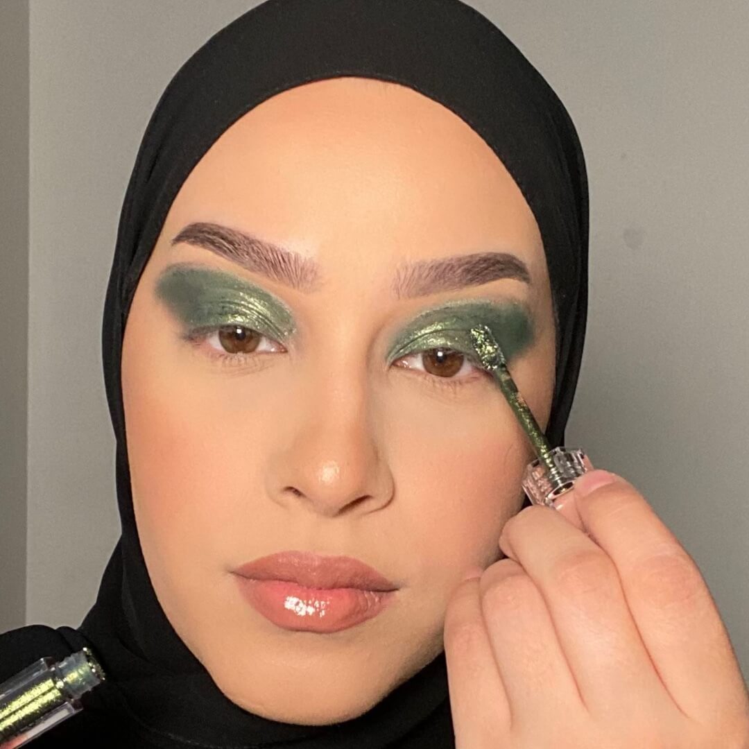 With the end of Ramadan approaching, it’s time to plan your Eid makeup… Influencer and makeup artist @minamacovei knows a thing or two about full showstopping celebration-worthy makeup, which she’s shared in this easy-to-follow step-by-step tutorial. This full glam Eid makeup look incorporates all our favourite makeup trends – from green lids and glitter to graphic liner and extended blush. Scroll down and follow along.