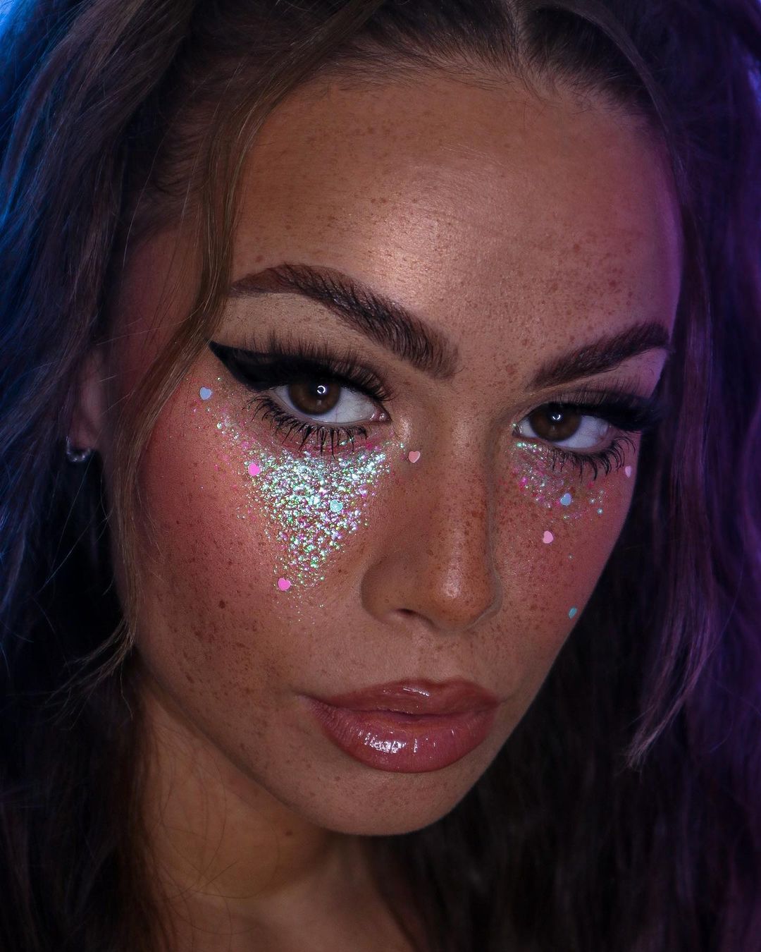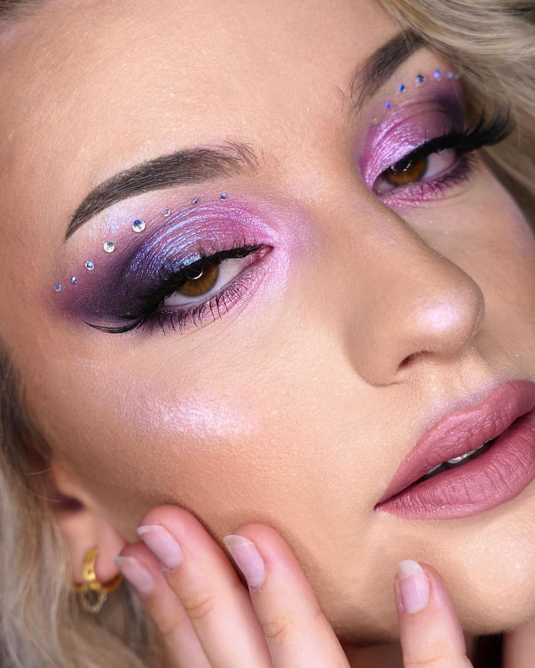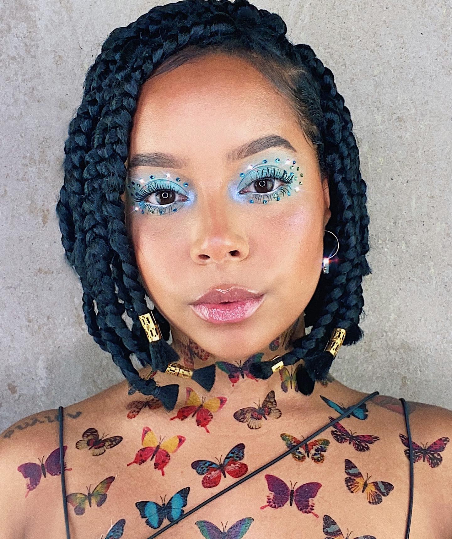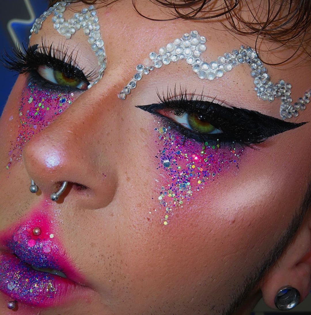 Gems? Check. Holographic lids? Check. Blinding highlighter? Check. @itsevasmu is ticking all the Euphoria-inspired boxes.