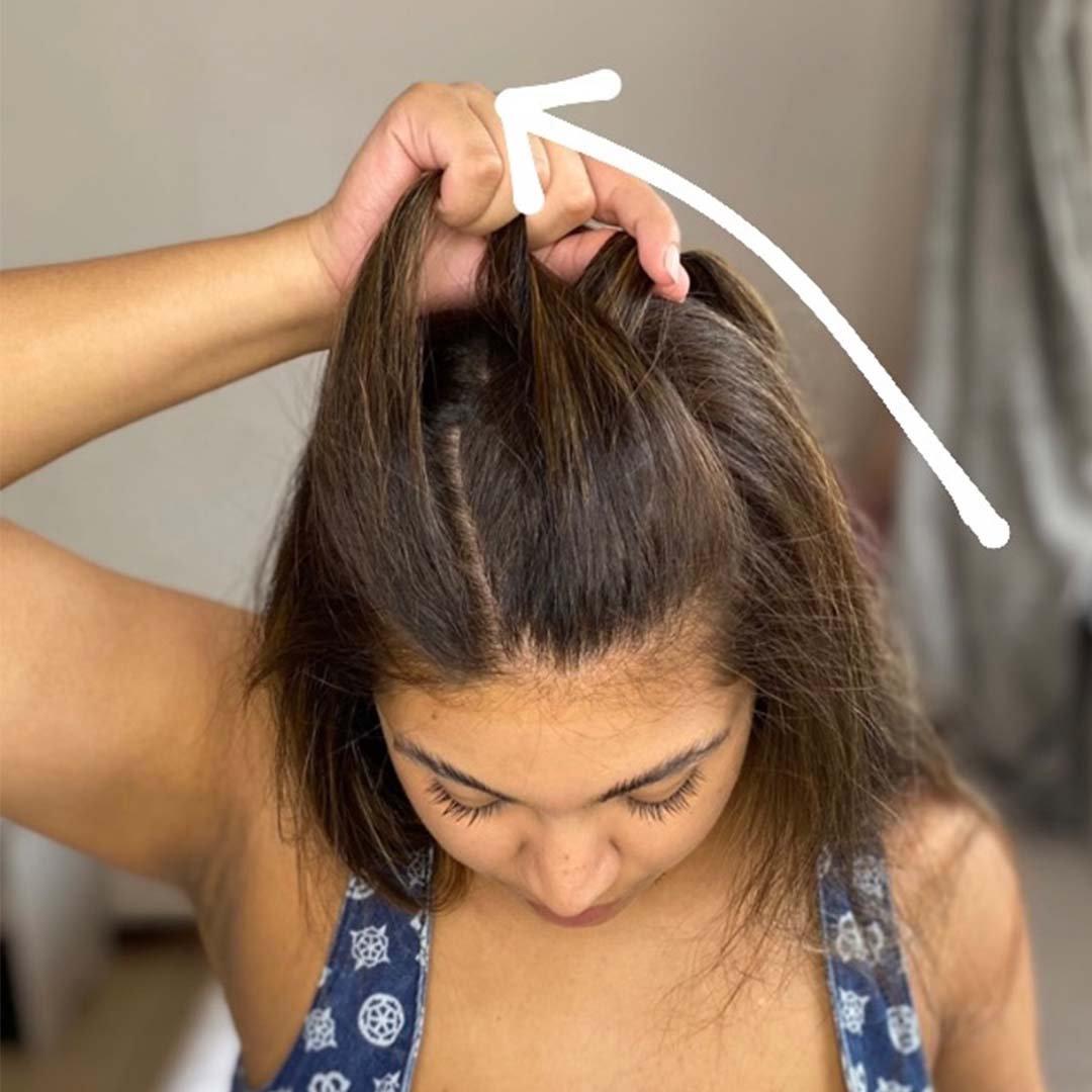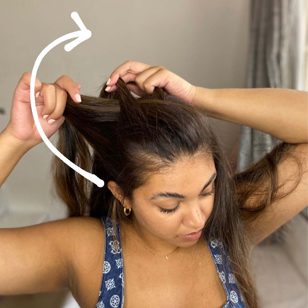 Gather a section of hair at the front of the head.
