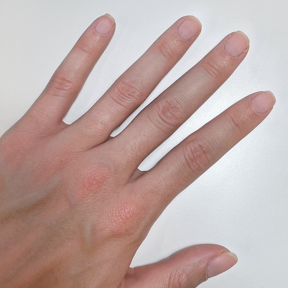 Once you’re happy with the blend, apply a clear topcoat over all of the nails and let them fully dry. Take some nail polish remover on either a small, flat brush or a nail wipe and carefully clean up any pigment that’s ended up on the skin surrounding the nail. Be careful not to remove any polish from your nail during this process. Finish with a generous slick of cuticle oil and hand cream.