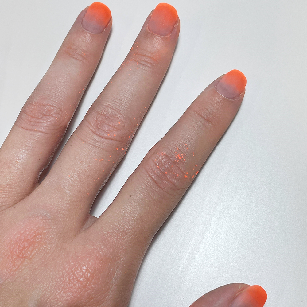 Apply the matte topcoat and let it fully dry. This adds friction to the nail surface so that the pigment adheres easily and stays put.