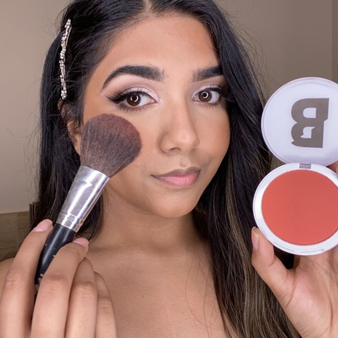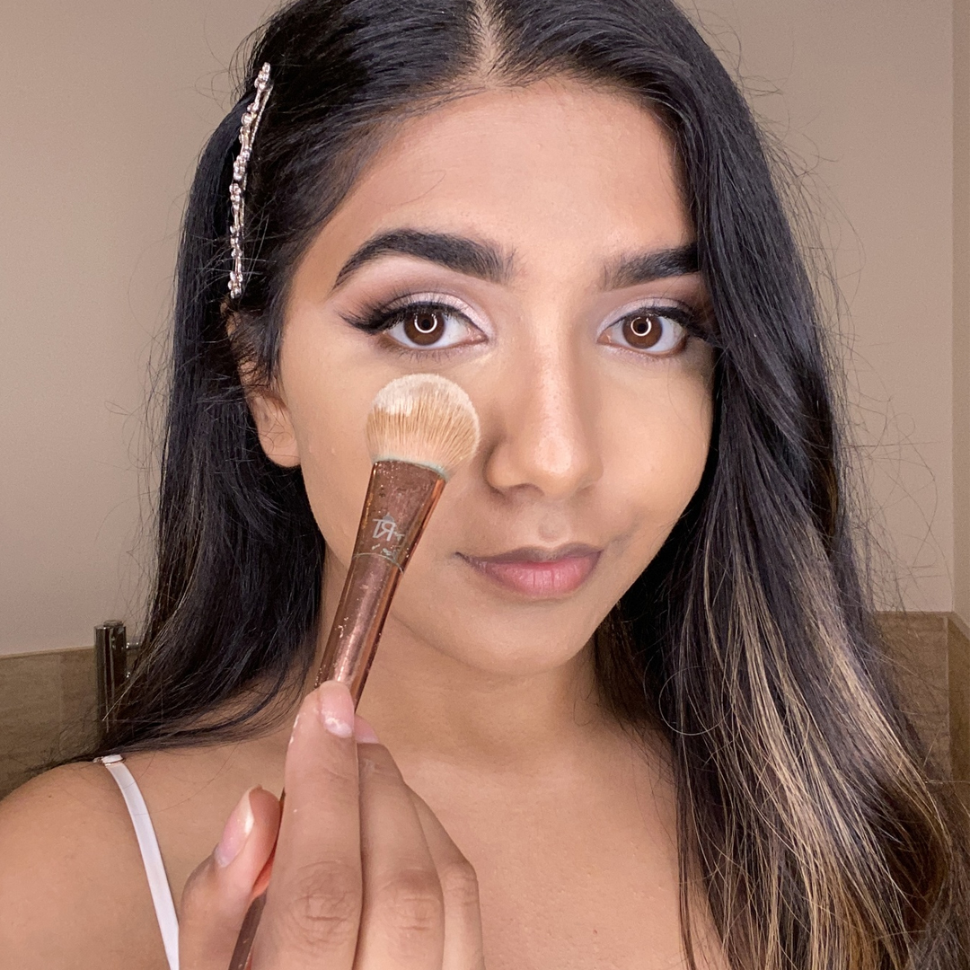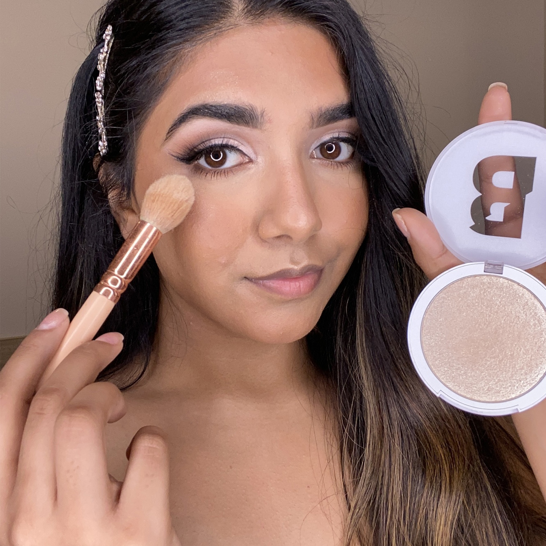 Complete your base by dabbing our Liquid Cream Highlighter to the high points of the face and blend out with a sponge or brush. Next, take our Powder Highlighter and dust over the cheekbones, the nose, the chin, and the forehead with a fluffy brush. To brighten your eyes, add some highlighter to the inner corner of your eyes, too.