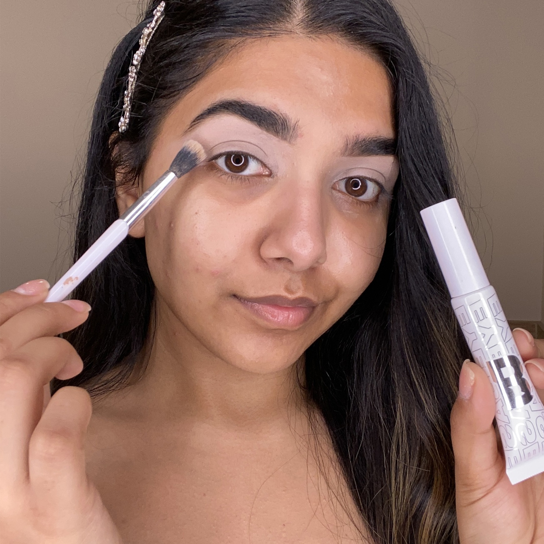 Eyeshadow primer will give your eye looks the ultimate staying power and create a blank canvas for your eyeshadow. Using a flat brush, apply our Eye Base onto the crease of your lid and carve out your brows. Buff the product out at the edges for a seamless effect.