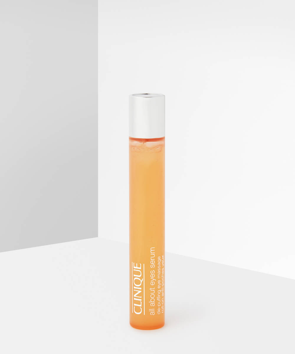 Rather than using thick eye creams, choose lighter, serum-like formulas instead to prevent build-up. Try the Clinique All About Eyes Serum De-Puffing Eye Massage – the delicate texture will also help to prevent puffiness.