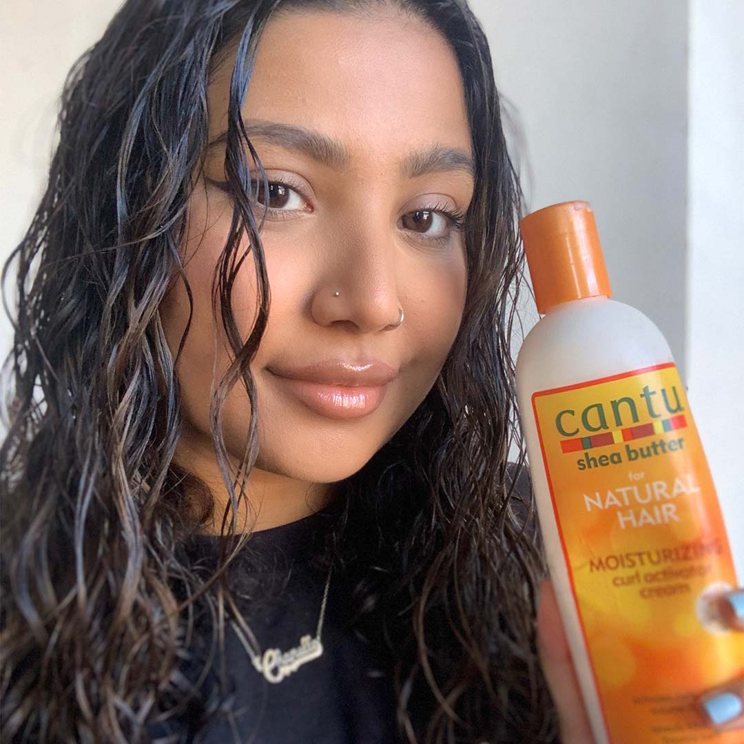 Take Cantu’s Moisturizing Curl Activator Cream and use scrunching motions to create waves.