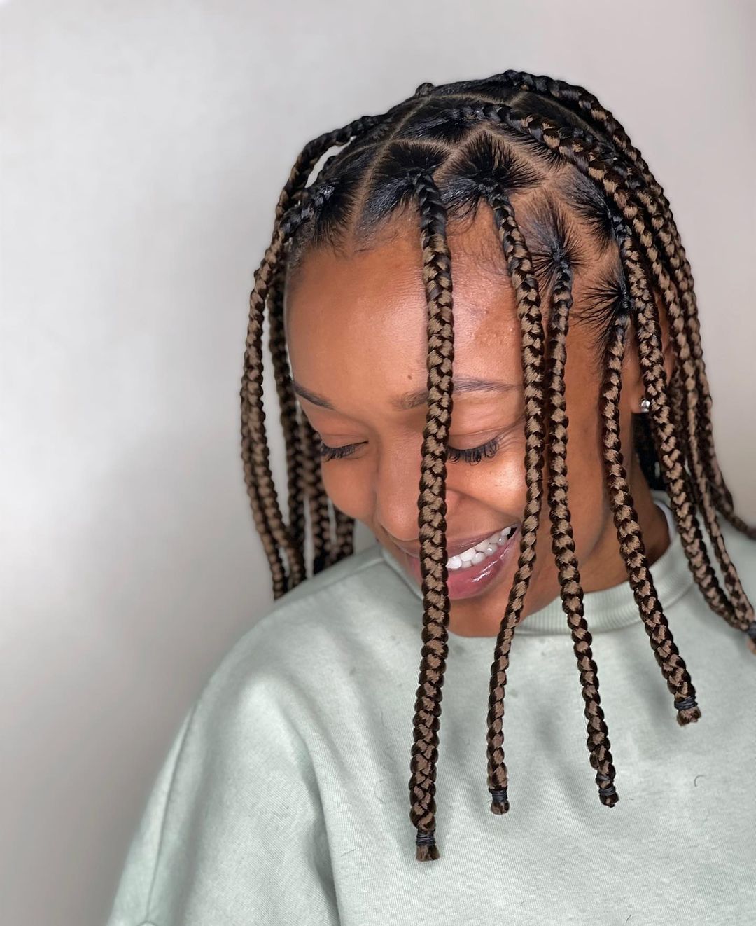 Give your braids the chop and opt for a knotless box braid bob. @cherbraids you have inspired us.