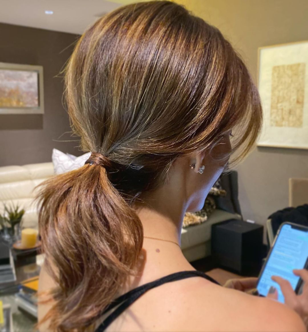 A low pony is a go-to for shorter hair, and @fertzpedraza understood the assignment.