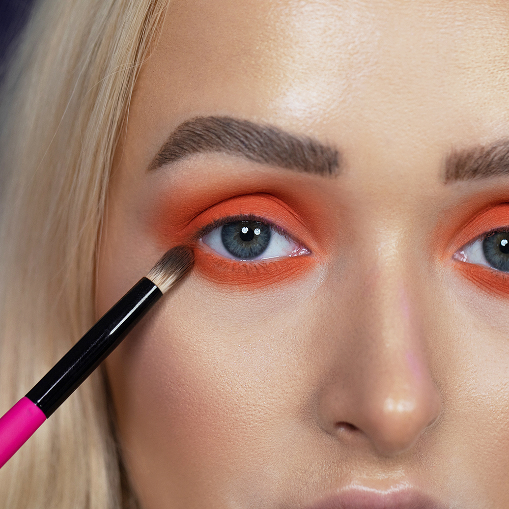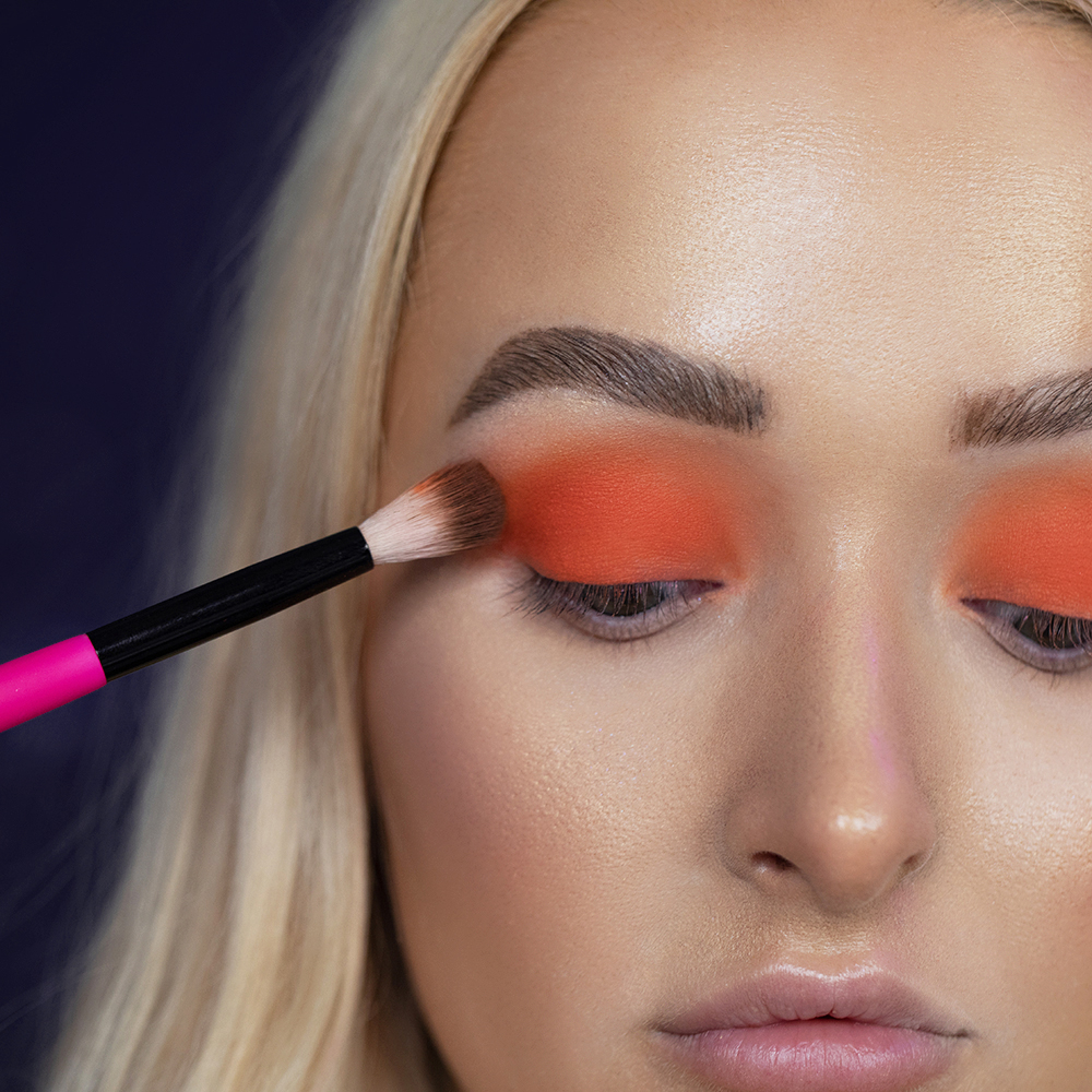 Using a dense blending brush, pack on the shade Heat Wave from the By BEAUTY BAY Bright Matte 9 Colour Palette, making sure the lid is evenly covered from the inner corner to the end of the brow.