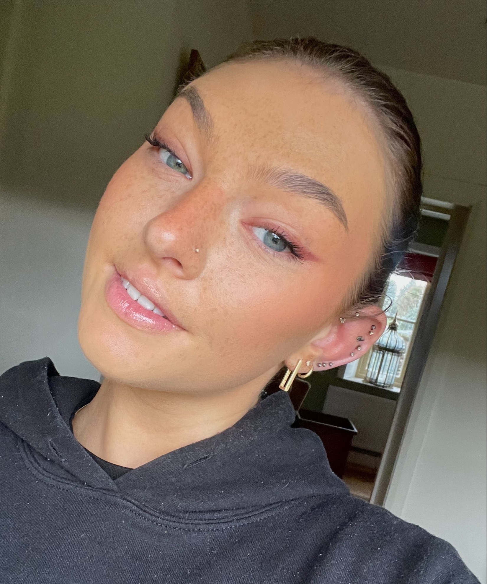 ‘I’ve heard so many amazing things about this brand I couldn’t wait to try this for myself. I love the laminated brow look but have been struggling to find the perfect product that keeps the hold down for long enough and now I think I’ve FINALLY found the one!! It comes with a little wooden spoolie that you can just wet and put straight into the hole in the middle then swipe straight over the brows to hold in place. To finish I just pencil in the strokes at the front. I have pretty stubborn brow hairs so I was really impressed that they held down all day, this is for sure a new staple in my makeup bag.’