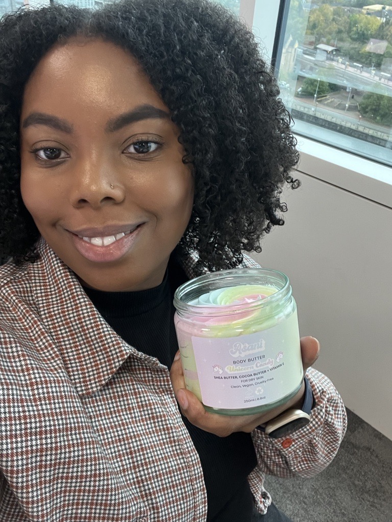 « My post bath routine has been transformed thanks to Asani Body Butter! First of all, the sweet unicorn candy scent is unreal. A little goes a long way but even when only using a tiny amount the amazing smell lasts throughout the day, I’ve had quite a few complements since I’ve started using this body butter. Aside from the gorge smell and looking cute, the mouse-like formula melts into my skin, leaving my normally very dry skin feeling silky soft and glowing. You can really feel the moisturising benefits of the shea butter and oils. »