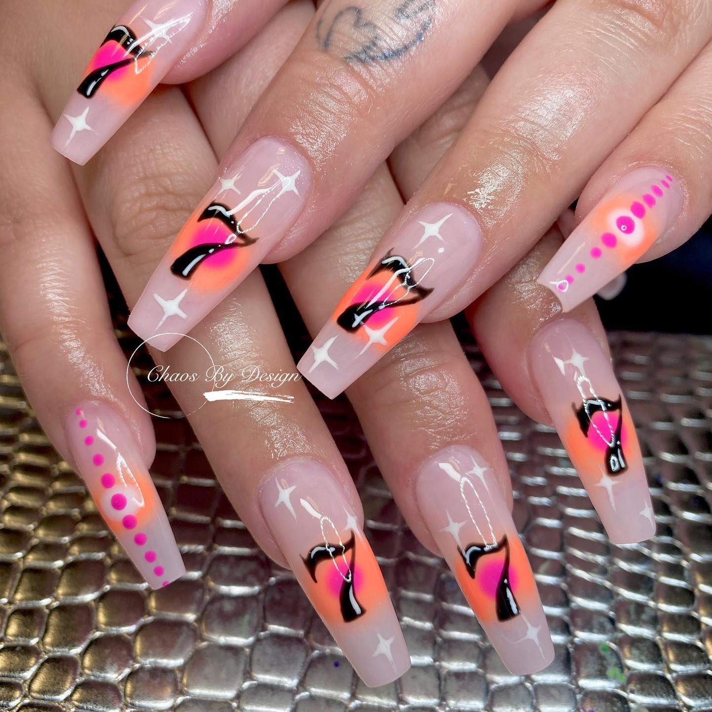 This long nail aura design is a big vibe, and we are so into it. @hotebonynailz, you have nailed it.