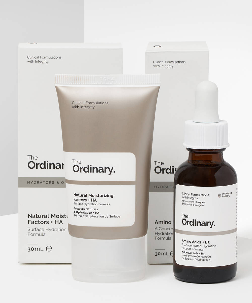 How to use: Mix a few drops of The Ordinary Amino Acid +B5 with a coin-sized amount of The Ordinary Natural Moisturizing Factors + HA and apply to skin after applying serums in both your morning and evening routines.