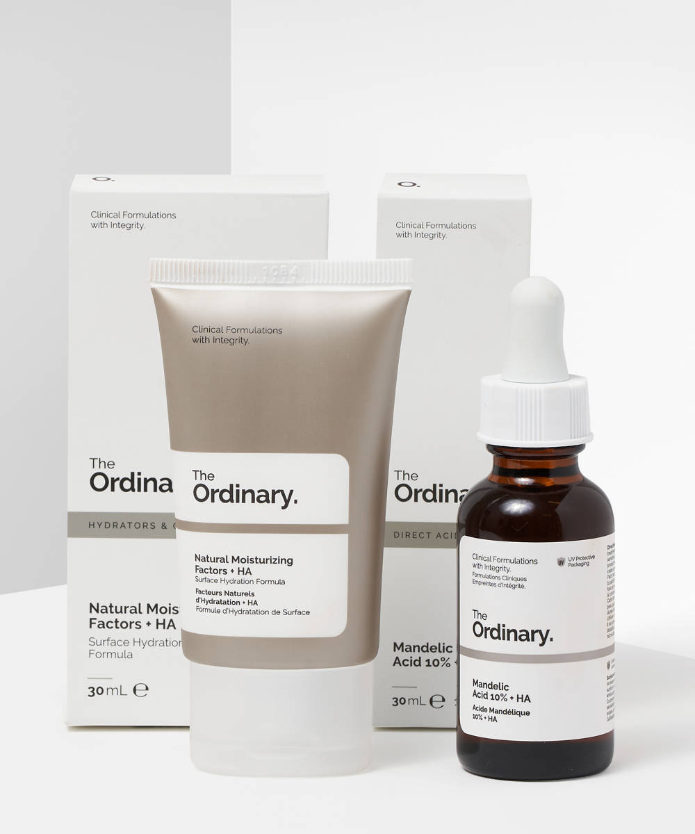 How to use: Apply The Ordinary Mandelic Acid 10% + HA to dry skin after cleansing in your evening routine. Follow up by massaging on a thick layer of The Ordinary Natural Moisturizing Factors + HA.