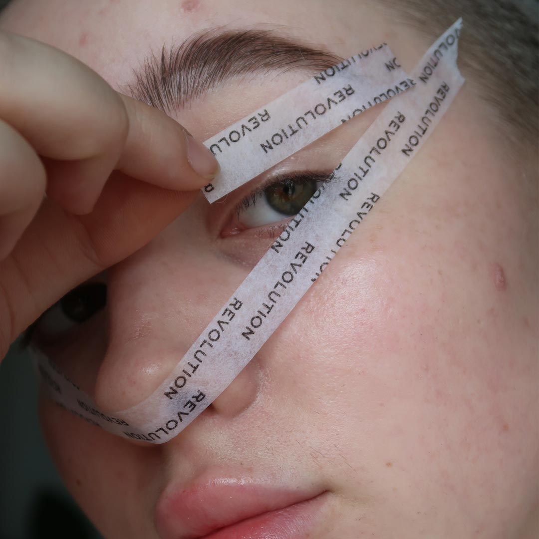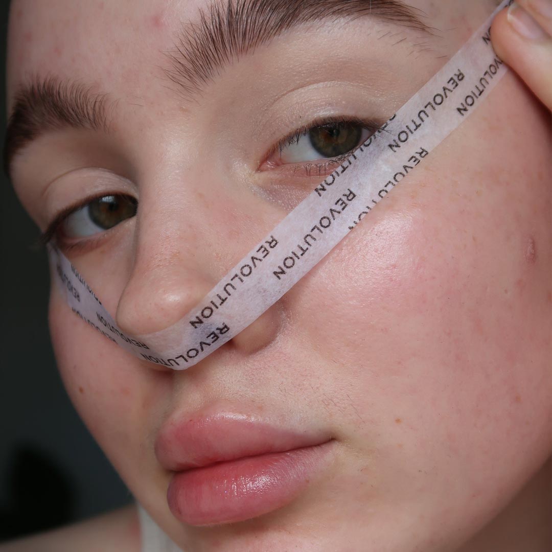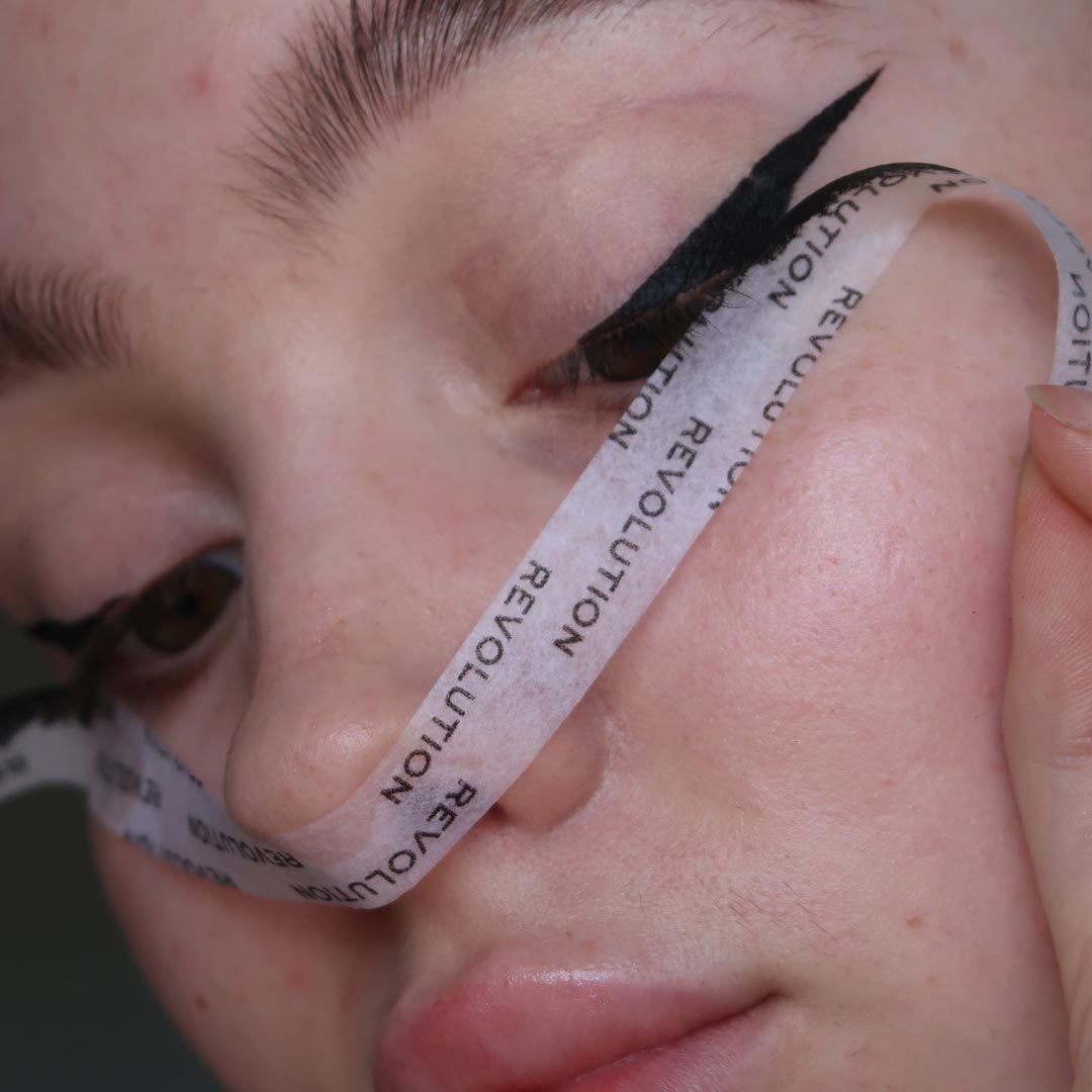 Cut a length of Makeup Revolution’s Cosmetics Tape long enough to stretch from ear to ear.
