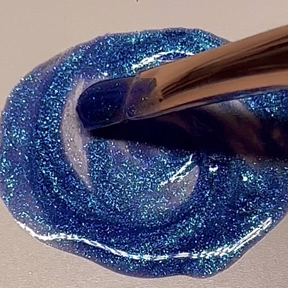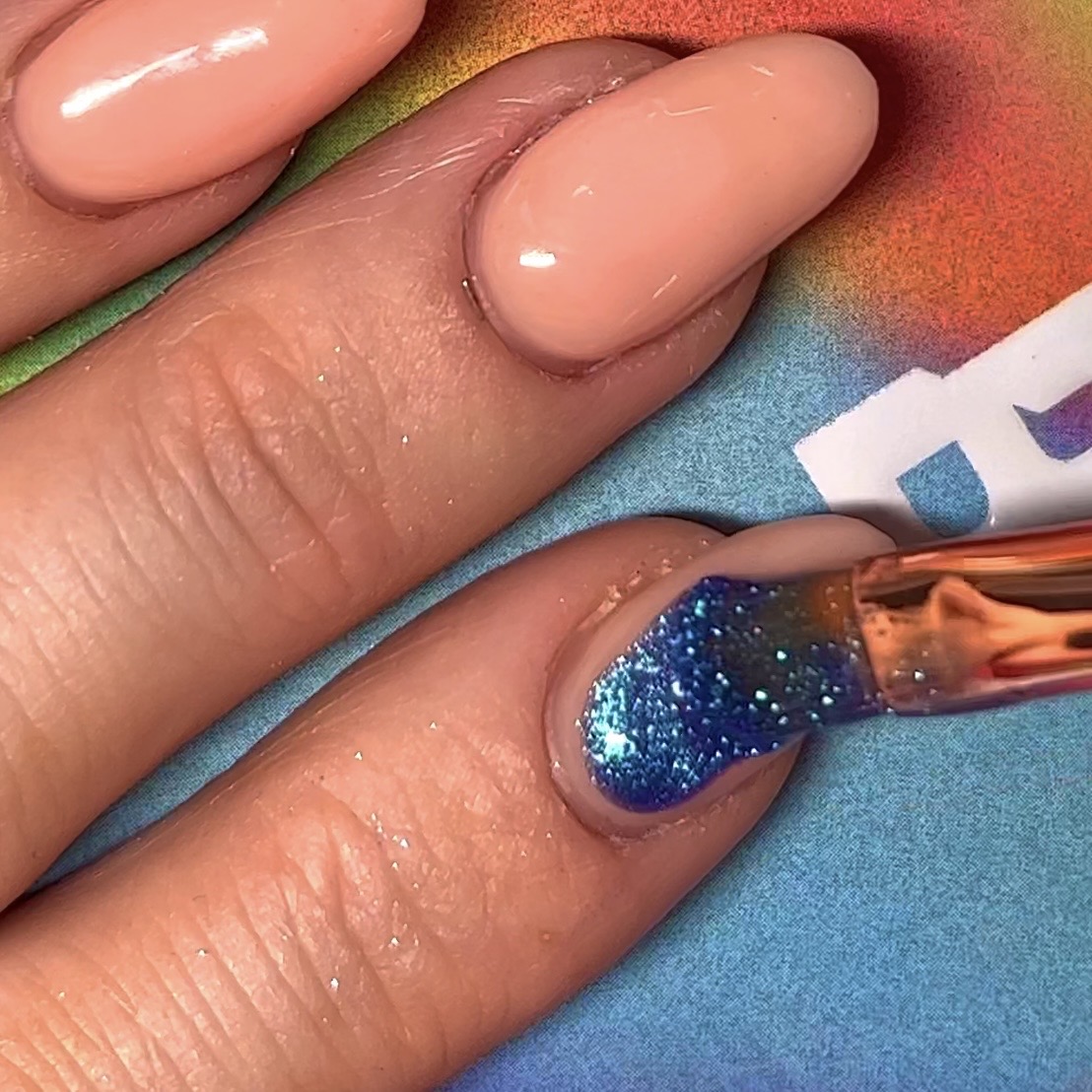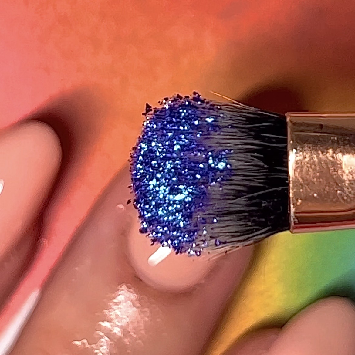 Now it’s time to pick your eyeshadow. We’ve opted for our By BEAUTY BAY New Mood Palette (obvs), using the shade Inspired and it hasn’t disappointed. Start by applying some of your base coat on a clean and dry surface, then pick up some of your eyeshadow pigment on a nail brush (or flat eyeshadow brush) and mix them together. Keep mixing until the consistency is smooth and evenly distributed.