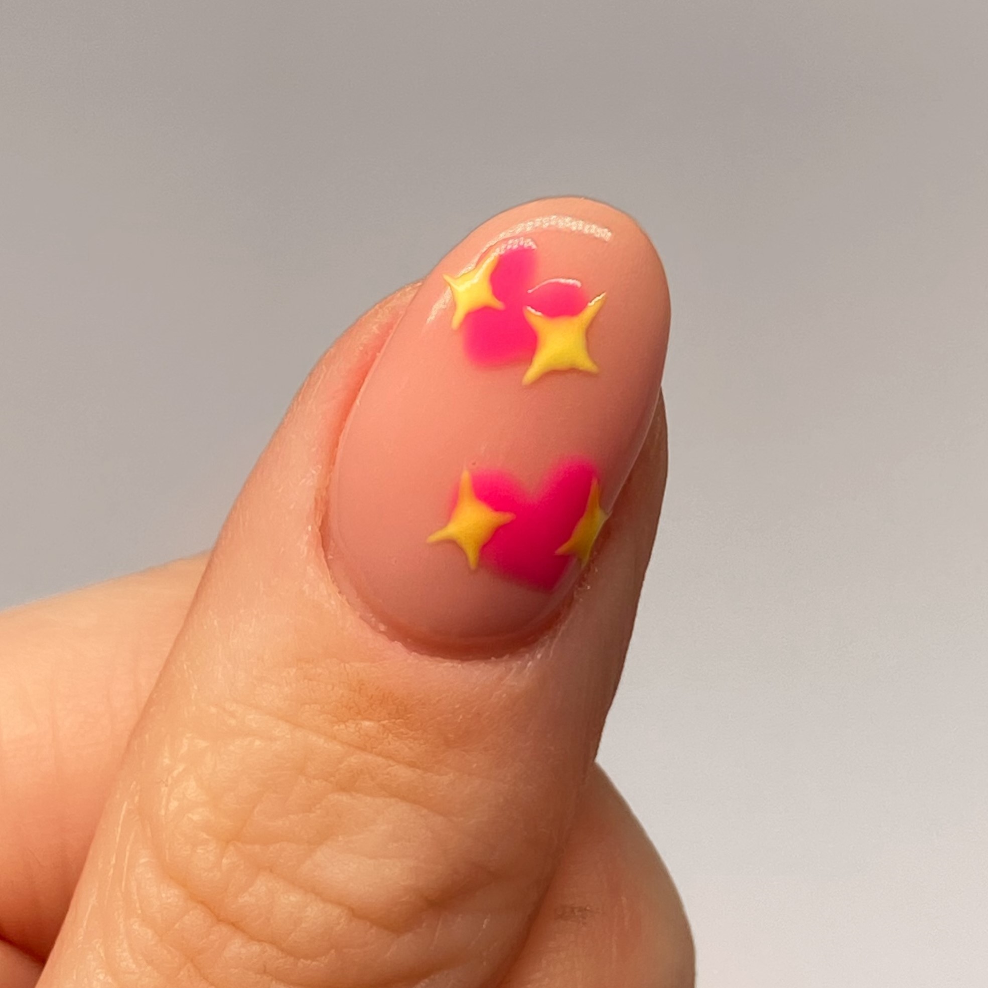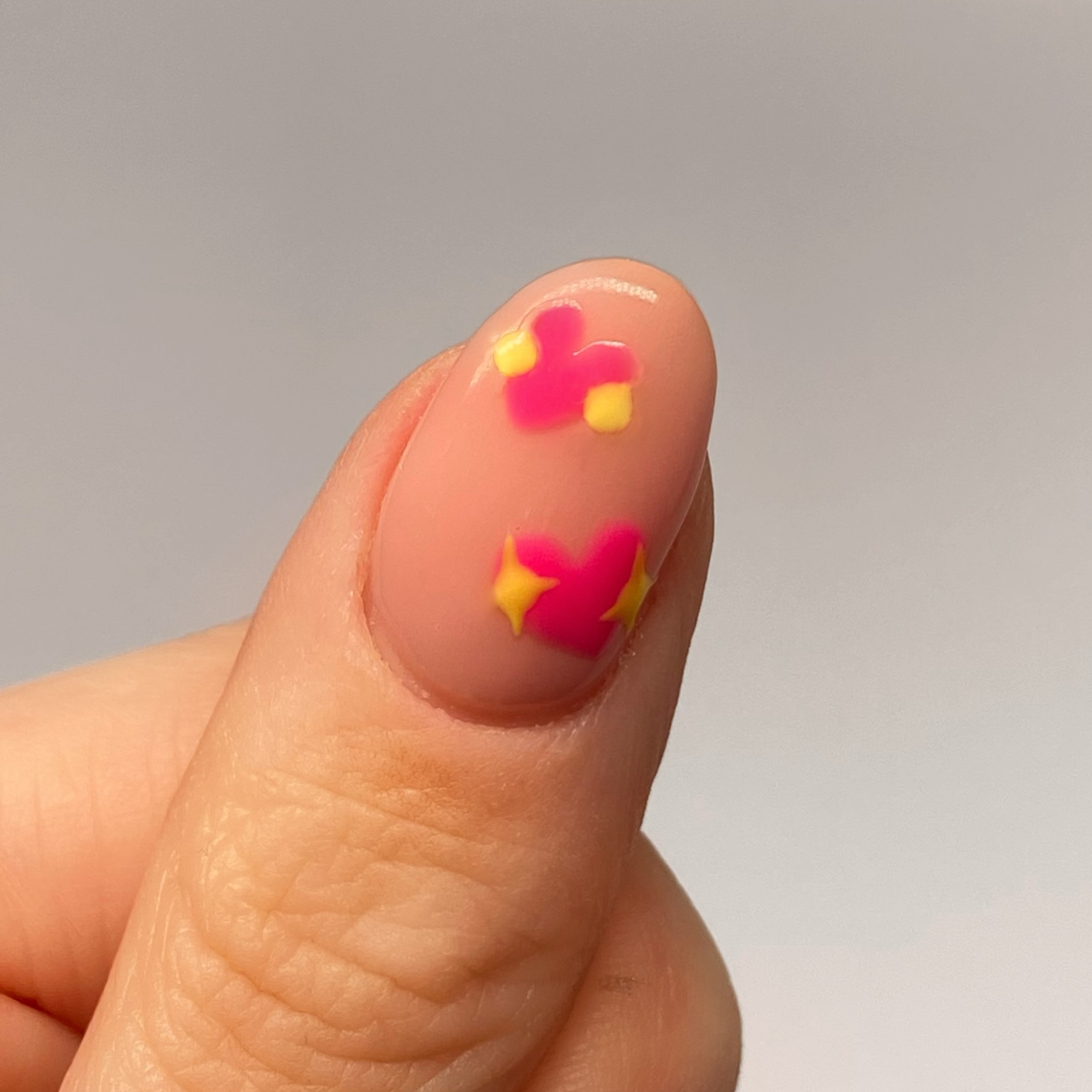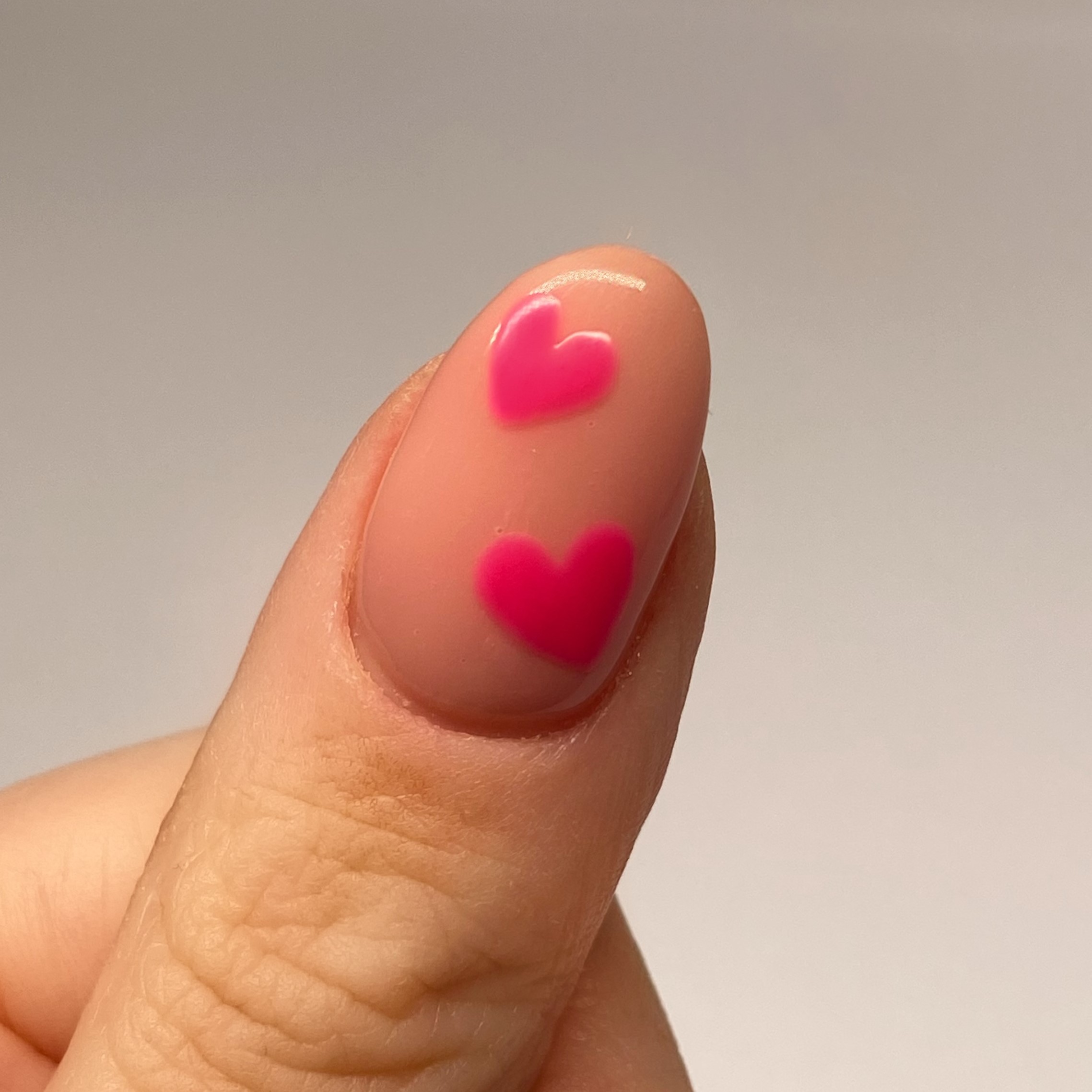 3. Using a pink polish and small detailer brush, start by painting on the outline of a heart, then fill it in. Use thin layers and build up the colour until it’s opaque.