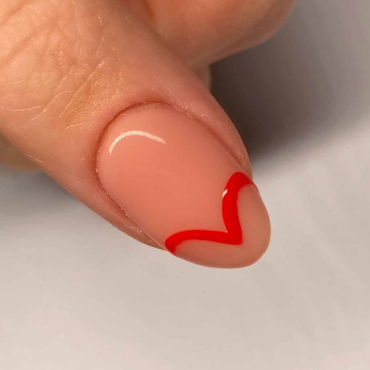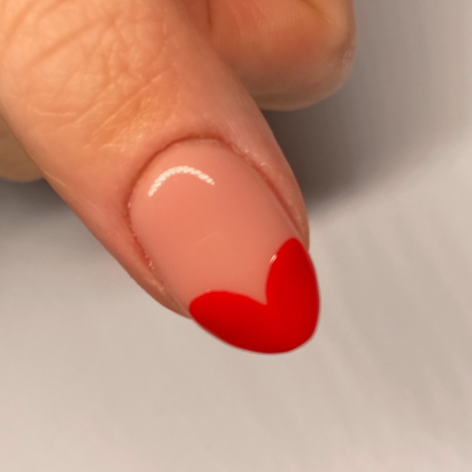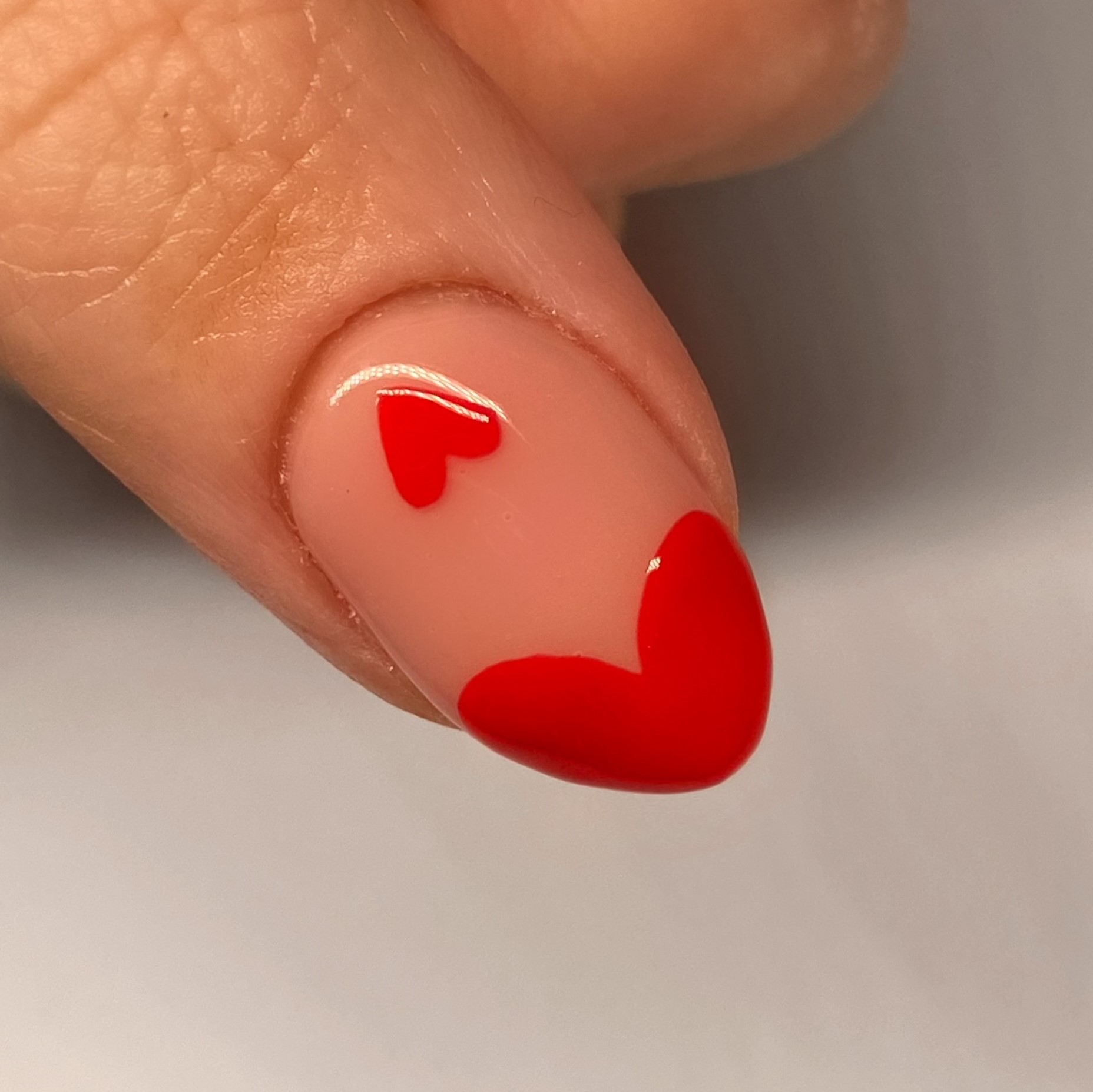 3. Using a red polish and small detailer brush, start by painting on the outline of a heart, then fill it in. Use thin layers and build up the colour until it’s opaque.